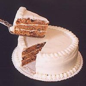 The only vegetable to eat! Moist layers of spiced cake with pecans and raisins, enhanced with a cream cheese frosting.