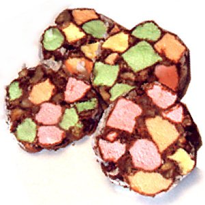 Colored marshmallows, pecans,